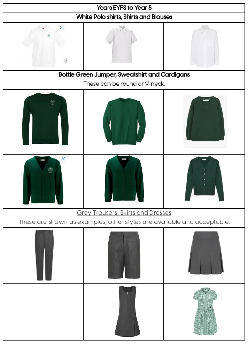Here is a quick-reference guide to our uniform with images to help you select uniform for your child. We hope it is helpful.